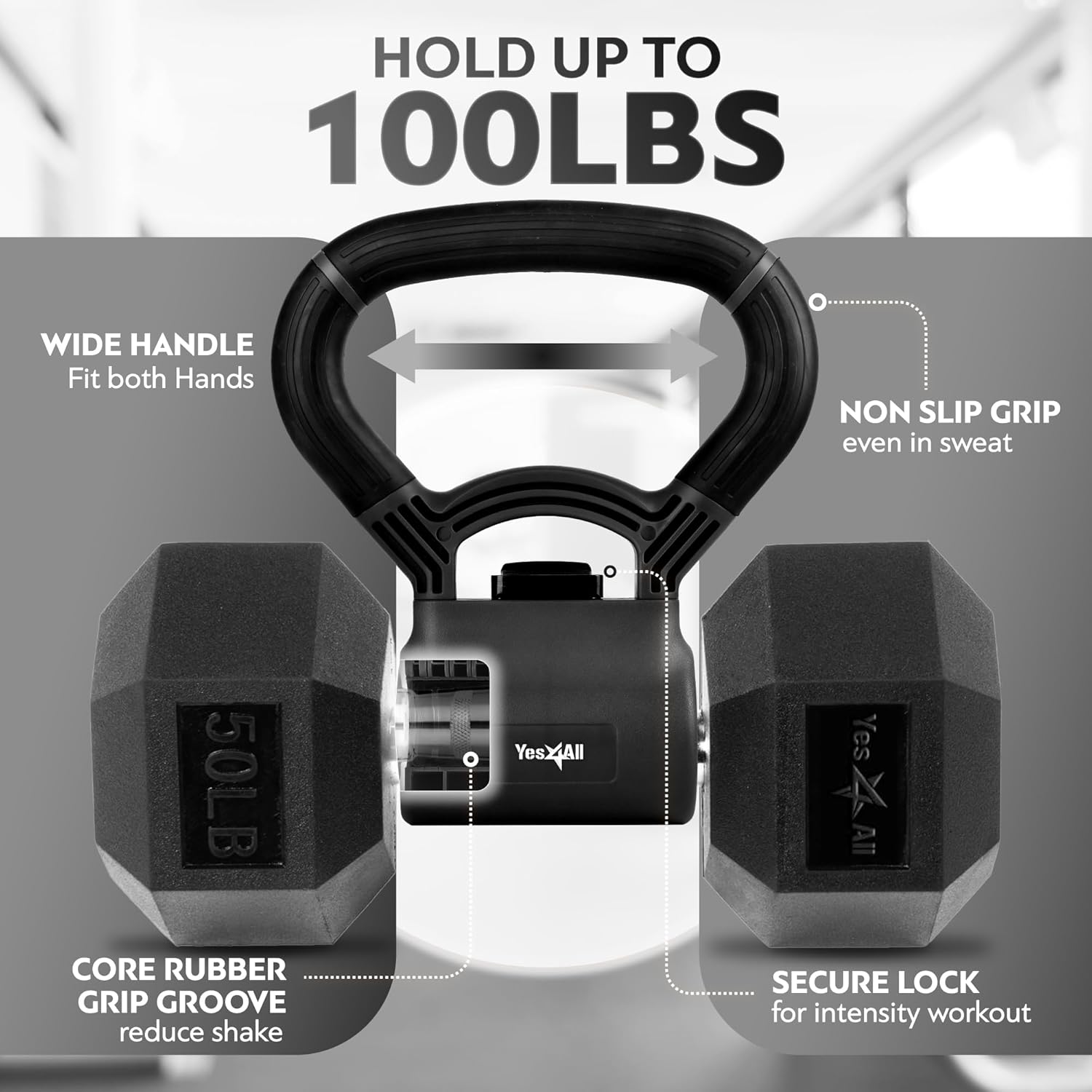 STURDY & HIGH CAPACITY: Upgraded dumbbell to kettlebell handle supports up to 100 pounds with secure locking mechanism, ideal for advanced exercises; Made from durable ABS plastic, dumbbell attachment is long lasting investment for your home gym