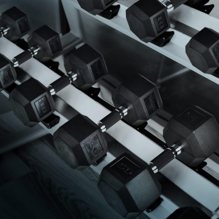• Hex weights encased in durable rubber to help reduce noise levels whilst protecting the floors and other equipment.