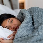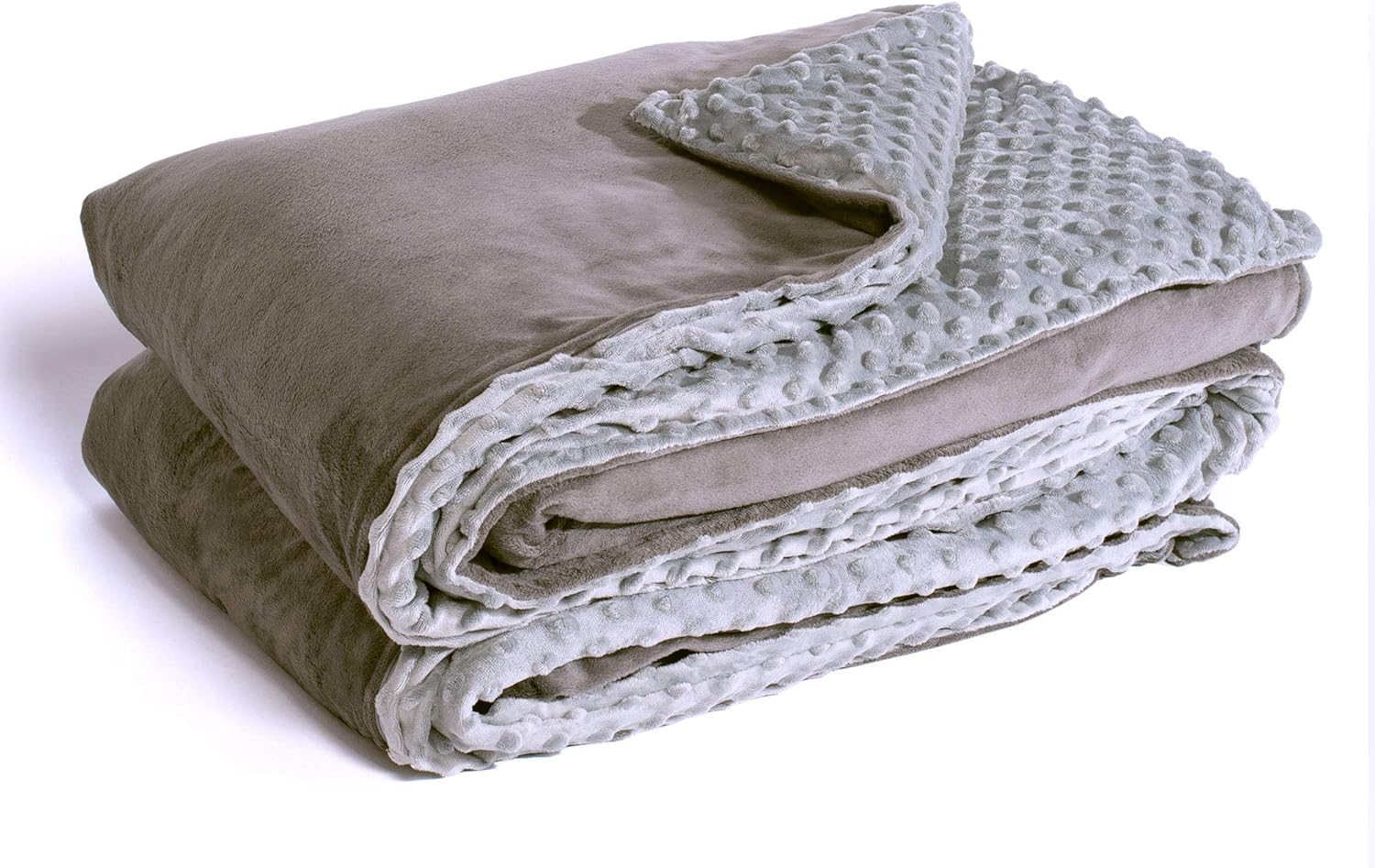 Feel the embrace of a weighted blanket that brings a soothing and grounding sensation to your nighttime routine