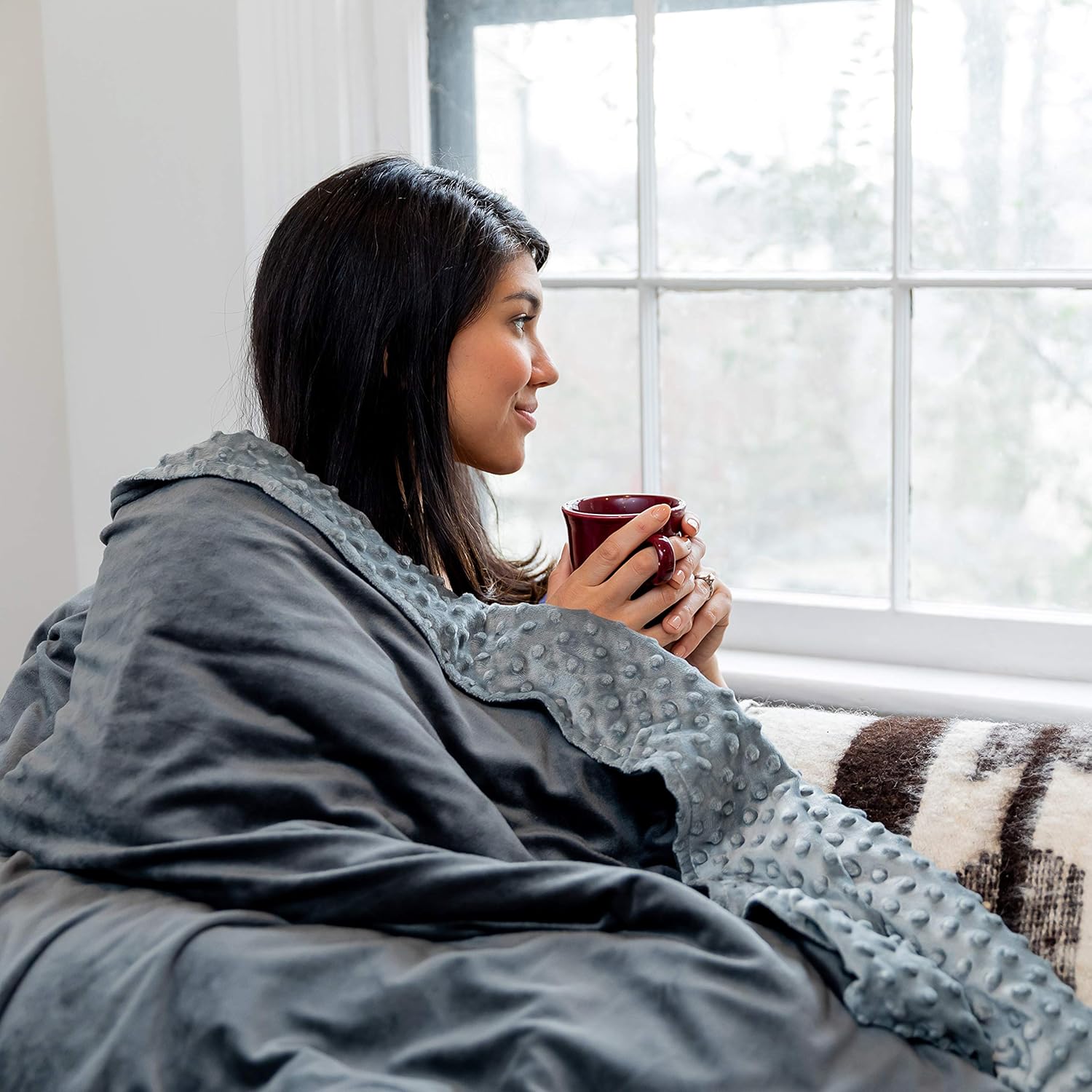 Sink into a deep sleep with the comforting pressure of our premium weighted blanket that feels like a hug! Great for adults and kids and can be used anywhere, from the bedroom to cozy evenings on the couch. Feel the embrace of a weighted blanket that brings a soothing and grounding sensation to your nighttime routine.