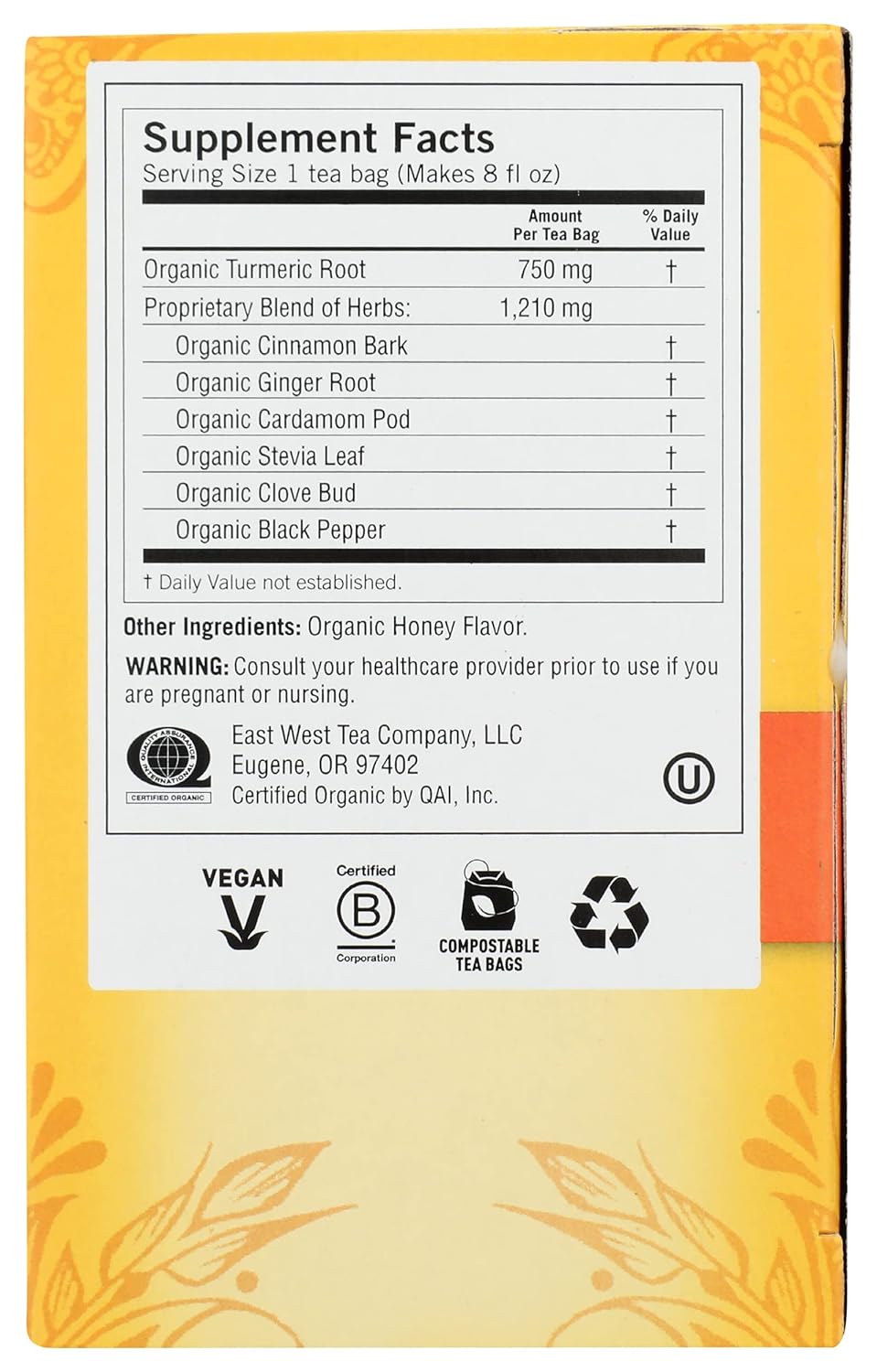 BENEFITS: Turmeric, traditionally used in Ayurveda for its abundant health-promoting qualities, combines with warming spices to help support your overall health and well-being.