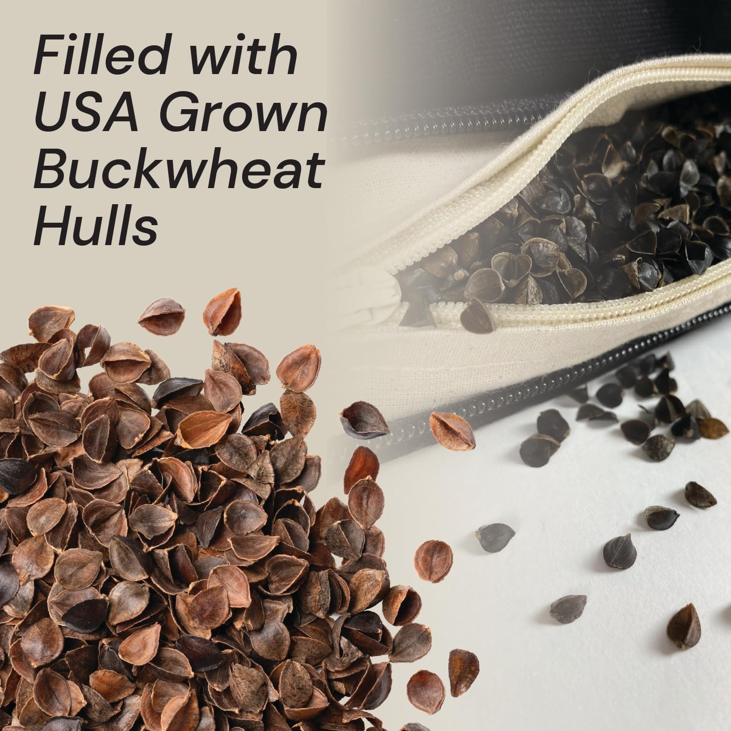 DURABLE cotton cover that is easily removed for washing and accessing buckwheat