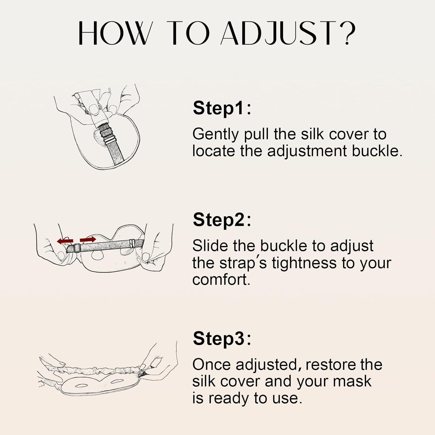 ✅Adjustable 3D Silk Sleep Mask: Zima silk sleep mask has an adjustable silk wrapping strap that adapts to all head sizes, and elastic band will not exert too much pressure or leave a mark on your head. Adjustment guide: Watch the video in Product Description.
