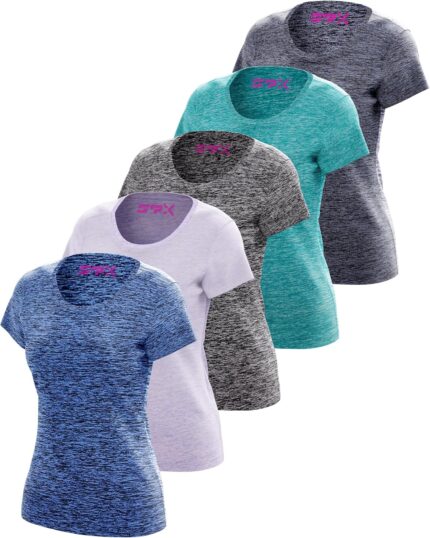 [5 Pack] Women’s Dry-Fit Wicking Crewneck T Shirts…